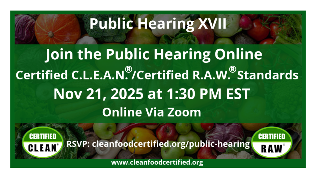 C.L.E.A.N.® & R.A.W.® Food Certification Online Public Hearing on Nov 21, 2025 at 1:30 PM EST